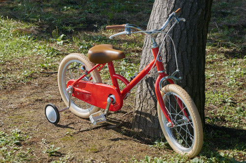 Little tokyobike 是我們的小童單車系列,適合 3-6 歲的小朋友騎乘。原裝附有輔助車輪,是小朋友學會踩單車的重要工具。所有 little tokyobike 皆配備米黃色的外胎,可愛之餘同時亦非常安全。值得一提的,是車架獨有的提把設計,除了能夠增加車架的堅固度,更是家長的好幫手,令你能夠輕鬆提起單車。