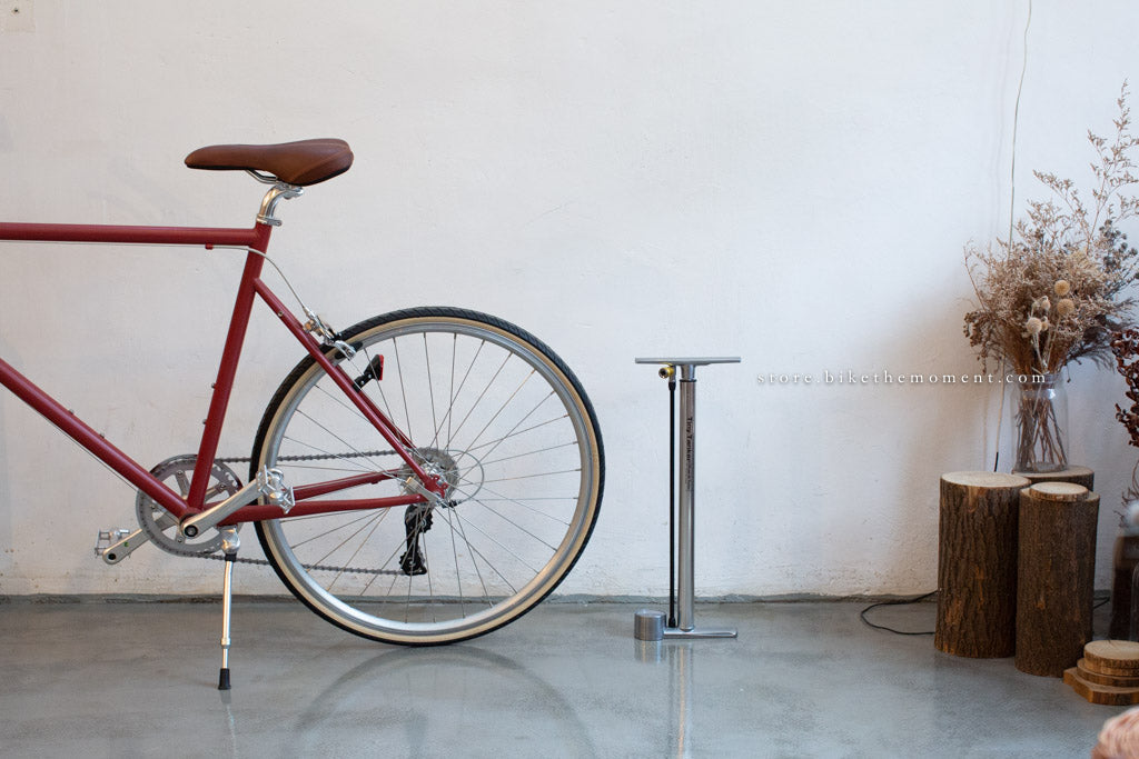 地泵是每個踩單車的人都應該有一個放在家的東西,基本上建議每兩個星期就打一次,這樣就能夠保持輪胎有最充足的氣壓,踩的時候亦會提供最暢順的體驗,令你可以用少一半力。這個全金屬地泵,台灣製造,外型十分漂亮和復古。放在家中不會覺得突兀。最大的特點是全整個泵收起來呈一字型,與其他的「三腳形」的泵不一樣,不會佔用太多位置,極容易收藏。金屬的地泵亦堅固耐用得多,這個可以說是店長精心挑選。