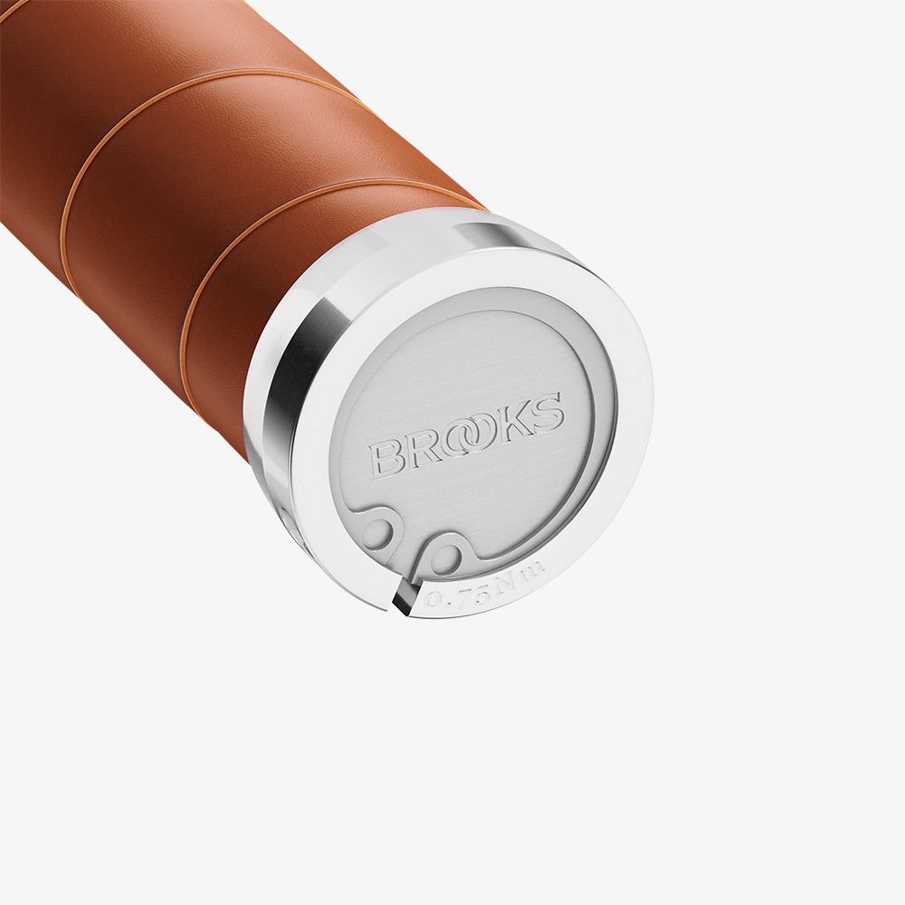 Brooks Slender Leather Grips 採用植物鞣製皮革帶,這是一種天然永恆的材料,經久耐用且外觀精美,非常適合直把自行車。該設計採用鋁製外殼,車把皮革帶以傳統方式纏繞在鋁製外殼上。然後用鋁和鋼夾將皮革固定到位,如果需要更換皮革帶,可以將其取下。