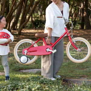 Little tokyobike 是我們的小童單車系列,適合 3-6 歲的小朋友騎乘。原裝附有輔助車輪,是小朋友學會踩單車的重要工具。所有 little tokyobike 皆配備米黃色的外胎,可愛之餘同時亦非常安全。值得一提的,是車架獨有的提把設計,除了能夠增加車架的堅固度,更是家長的好幫手,令你能夠輕鬆提起單車。