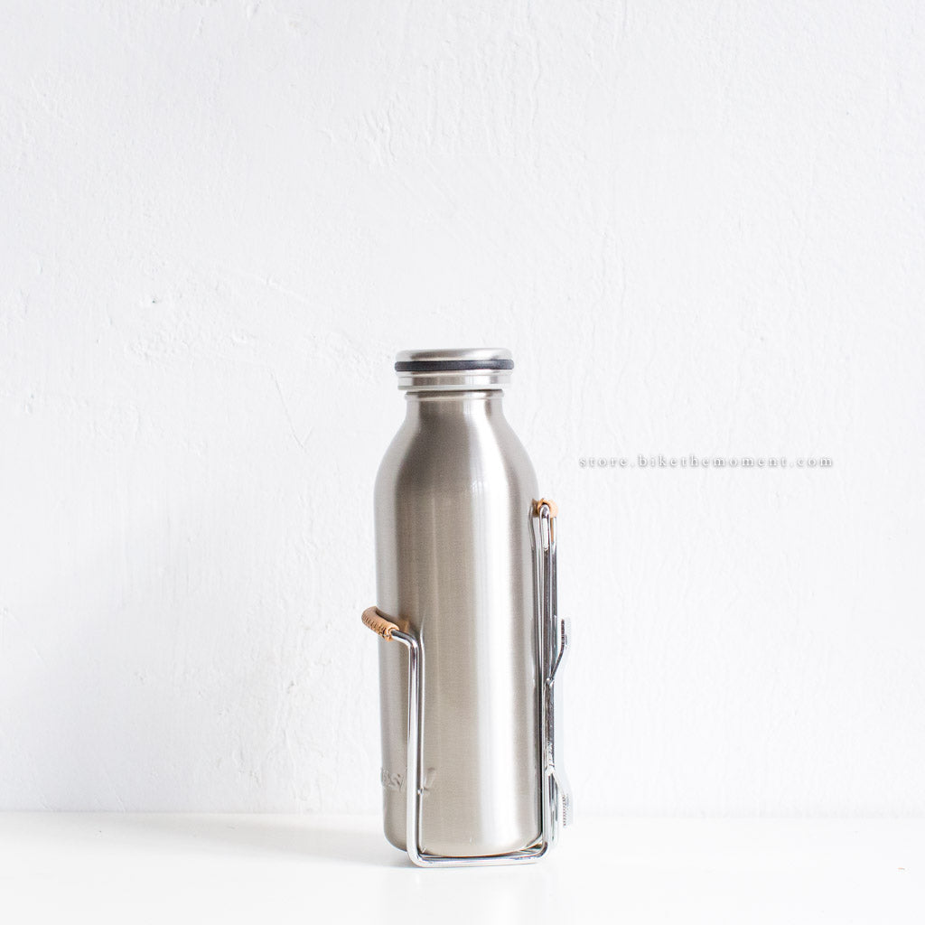 復古金屬水架,皮革部分減少與金屬水樽摩擦發出的聲響。經濟好用的款式,適合 tokyobike 及所有復古風格的單車。店長也推薦這個給大家。